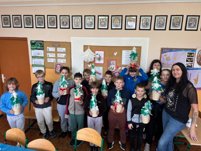W naszej szkole zapanowała iście magiczna atmosfera! Uczniowie klasy 4 wzięli udział w wyjątkowych warsztatach rękodzieła, podczas których przygotowywali bożonarodzeniowe ozdoby. Pod czujnym okiem zaproszonej artystki, pani Małgorzaty Rzempowkiej-Skóry , czwartoklasiści własnoręcznie wykonali efektowne choinki oraz barwne bombki. Pani Małgorzata z ogromną pasją dzieliła się swoją wiedzą,
