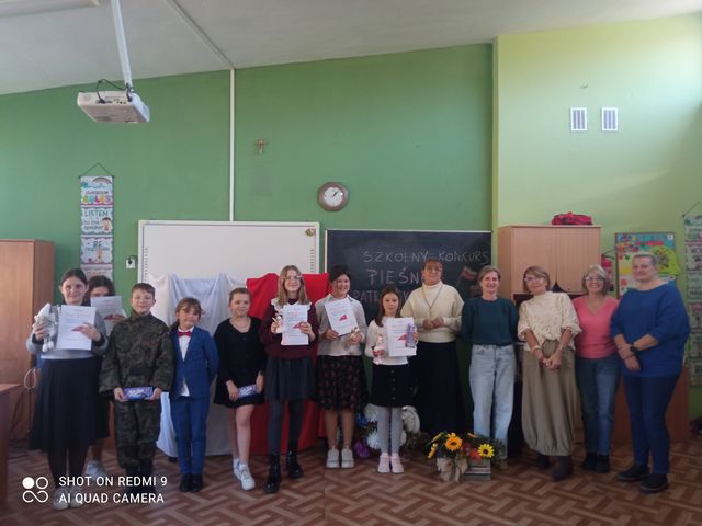 Po raz  XI w naszej  szkole odbyły się   szkolne eliminacje do gminnego konkursu Pieśni Patriotycznej.  Celem konkursu jest popularyzacja pieśni o charakterze patriotycznym, prezentacja umiejętności wokalnych  i  przełamywanie tremy wśród uczniów. Nagrodzeni uczniowie reprezentować będą naszą  szkołę w gminnym konkursie Pieśni Patriotycznej w PSP w