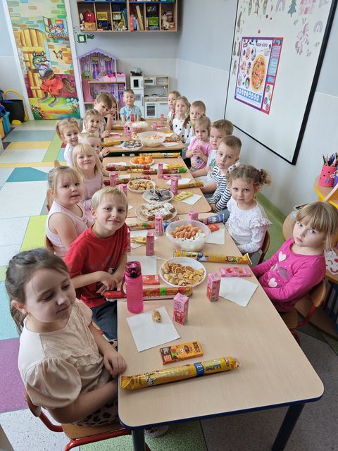 Po intensywnych aktywnościach przyszedł czas na poczęstunek. Na stołach pojawiły się owoce, drobne przekąski oraz słodkości w misiowym klimacie, które smakowały wyjątkowo dobrze w towarzystwie ukochanych pluszaków.