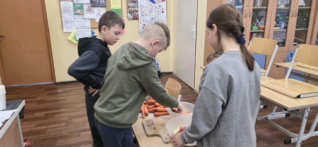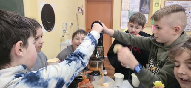 . Wspólnie przygotowali własnoręcznie wyciskane soki ze świeżych warzyw i owoców, poznając przy tym wartości odżywcze składników oraz zasady zdrowego odżywiania.