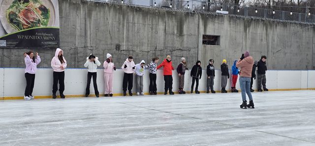 Klasy 5, 6 i 8 ruszyły na podbój lodowiska – jedni sunęli po tafli jak profesjonaliści, inni ćwiczyli bardzo bliską współpracę z lodem
