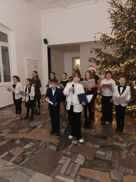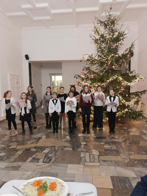 Dnia 11.12.2025r. uczniowie z koła artystycznego na zaproszenie księdza proboszcza,  pani Sołtys i  Rady Sołeckiej uświetnili swoim występem Wigilię Parafialno-Sołecką  dla mieszkańców i zaproszonych gości Gminy Mieroszów.  Uczniowie zaśpiewali przepiękne, polskie kolędy, a także radosne pastorałki. Nie zabrakło poezji  o tematyce bożonarodzeniowej.